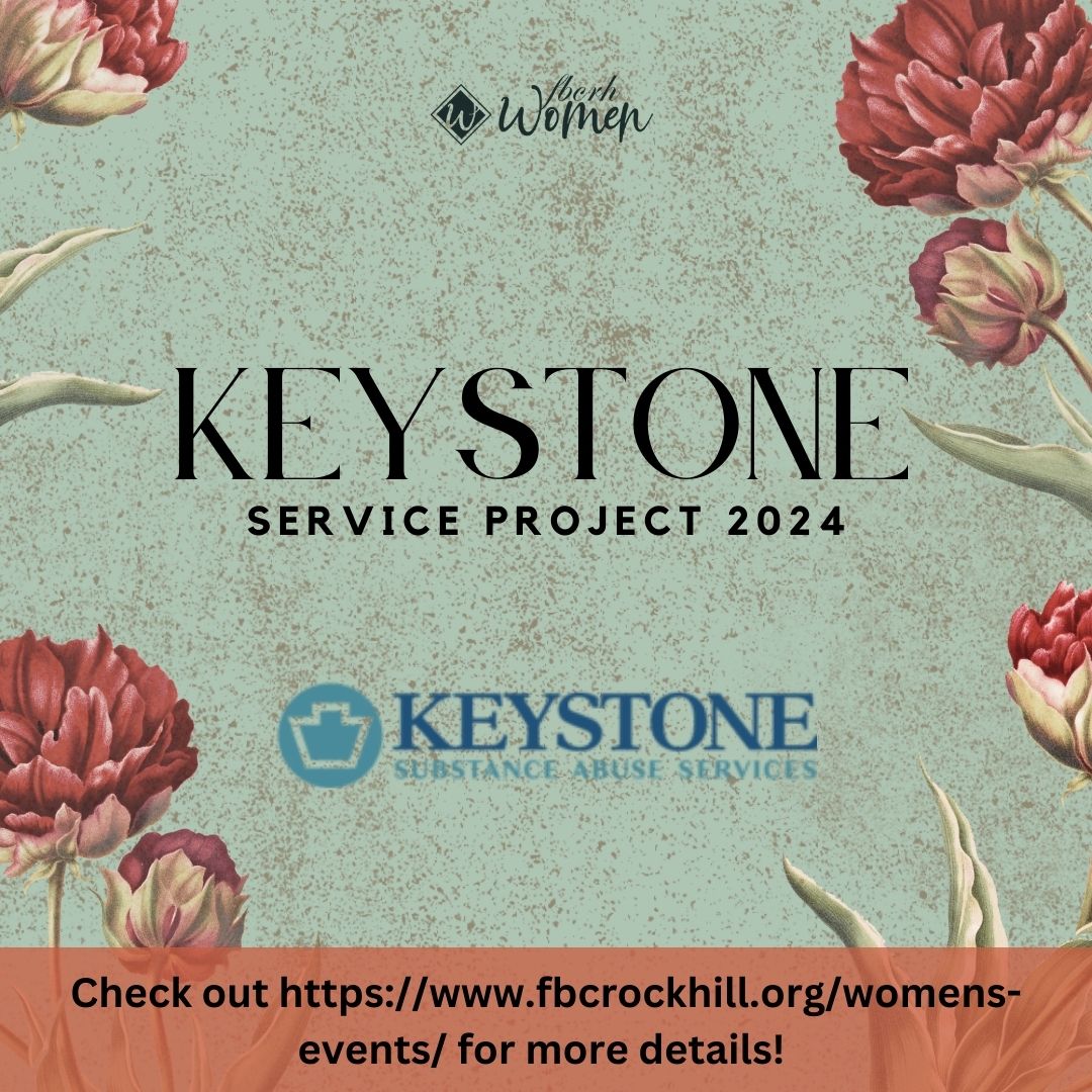 At this year’s women’s event, we will be supporting Keystone Substance Abuse Services here in Rock Hill by meeting the needs of their patients. Through your efforts, we will provide gift cards to easily accessible restaurants. therapeutic craft supplies, and books for these patients. Below is a list of items requested as they journey on the road to recovery. Feel free to bring more than one item. Please do not place items in a gift bag. Please bring these items with you to the women’s event, as there will be a designated space for you to drop them off: