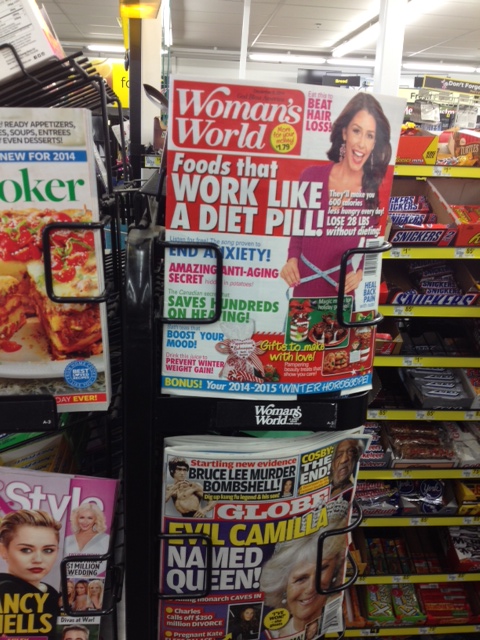 Yesterday while standing in line to pay for a few items at a local Dollar General store, I noticed a headline on the cover of a magazine in the rack strategically placed to encourage last minute purchases. It worked because I bought the magazine. The headline read “Foods that WORK LIKE A DIET PILL! They’ll make you 600 calories less hungry every day! LOSE 28 LBS without dieting!”