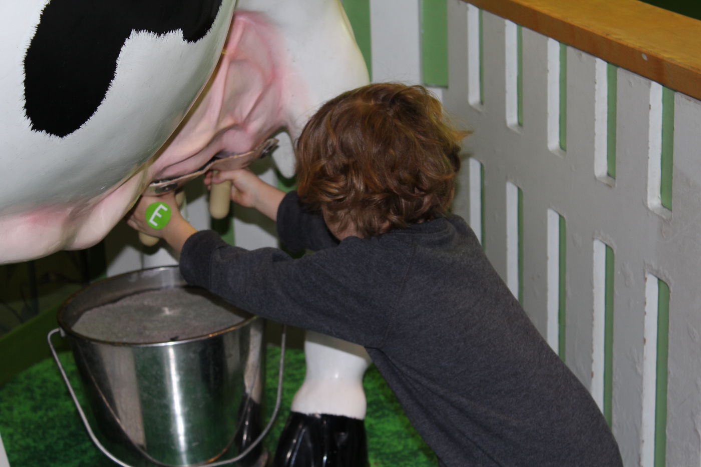 Liam milking a cow at Edventure:
