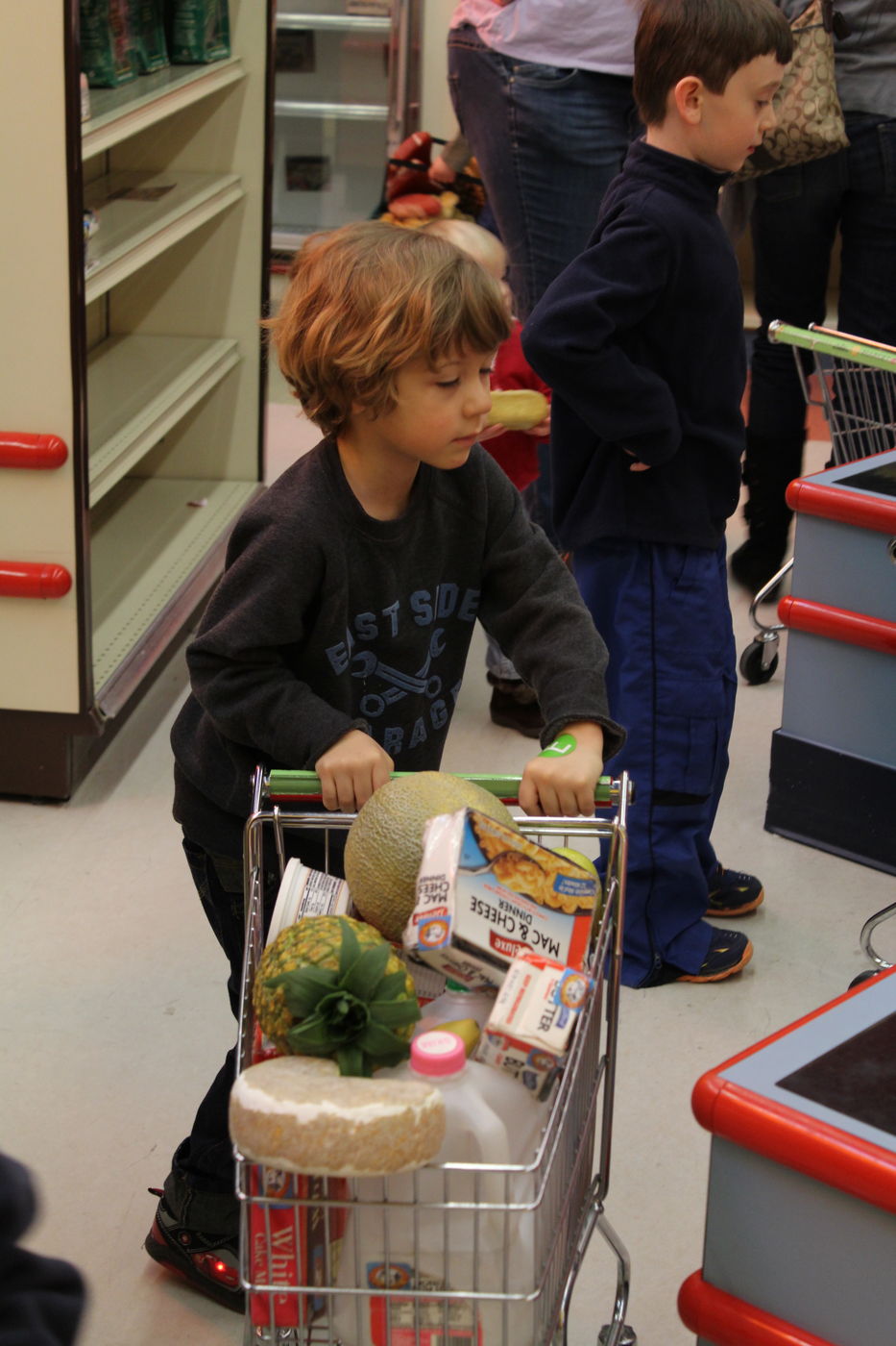 Liam shopping for groceries at Edventure: