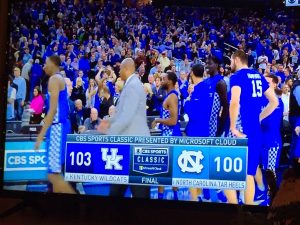 Saturday evening we gathered with my family at my sister’s house to eat chili and watch UK basketball.   Since there were more kids and an entertaining game between UK and UNC, this gathering was much louder than the one earlier in the day.