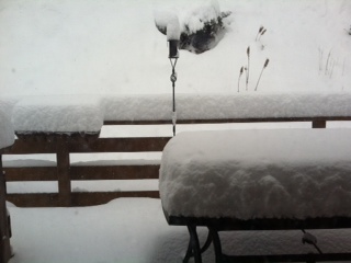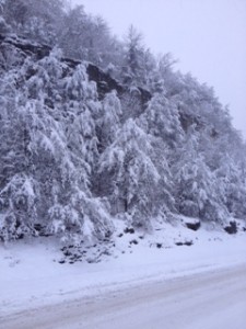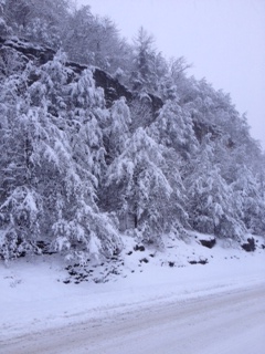 My brother in Ky sent me the photo below on his way to work this Thursday morning. They got about 7 inches of snow last night. Meanwhile I’m sitting in my kitchen typing this and watching large flakes of snow fall outside – the last remnants of our storm. Steven, our son in Columbia, said this morning the frozen rain on top of their snow was so hard you didn’t sink when you walked on it.